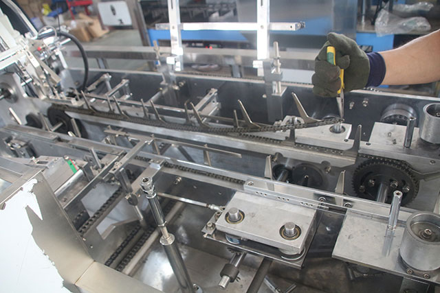 半自動(dòng)裝盒機(jī)只有封盒功能的紙盒包裝機(jī),又稱(chēng)“封盒機(jī)”。半自動(dòng)裝盒機(jī),需用手工開(kāi)盒、裝盒,再將裝有物料的盒子經(jīng)過(guò)機(jī)器封盒。自動(dòng)裝盒機(jī)帶有自動(dòng)開(kāi)盒、入料、封盒功能的紙盒包裝機(jī)。全自動(dòng)裝盒機(jī)帶有自動(dòng)放料或與